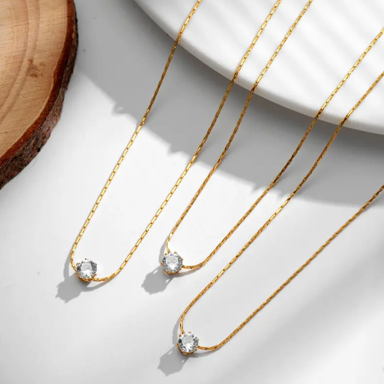 हमारे कोमल नेकलेस के साथ किसी भी आउटफिट में सूक्ष्म चमक जोड़ें। एक नाजुक चेन और एक छोटे क्यूबिक ज़िरकोनिया स्टोन की विशेषता वाला, यह सुंदर एक्सेसरी लालित्य का सही स्पर्श जोड़ती है। रोज़ाना पहनने या किसी खास अवसर के लिए बिल्कुल सही।